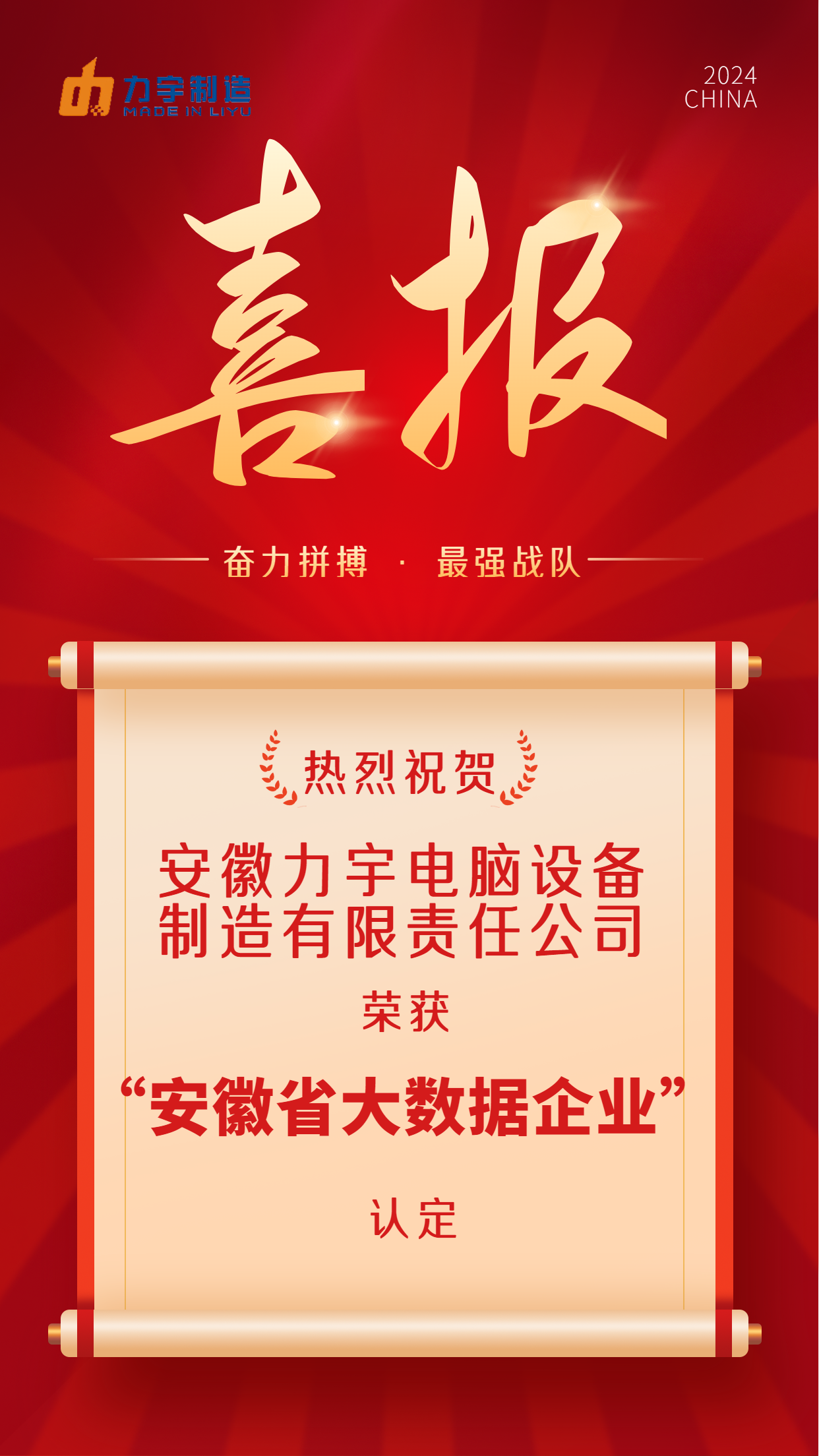 喜报 · 热烈祝贺安徽力宇荣获“安徽省大数据企业”认定