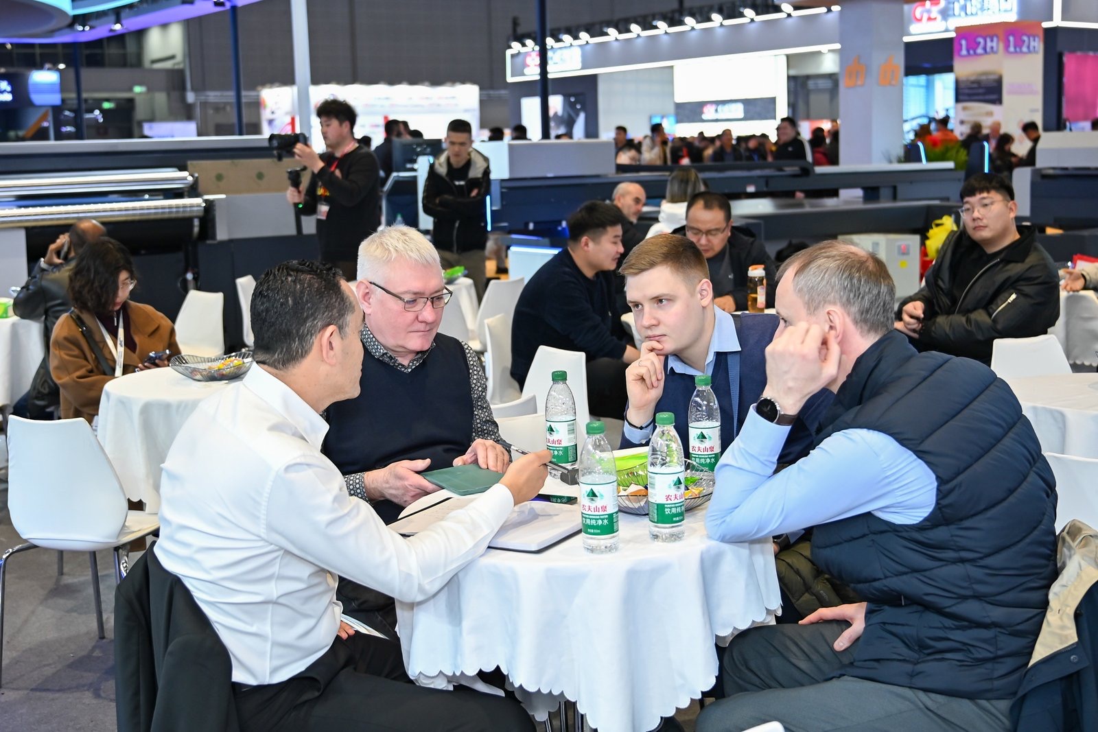 随着倒计时的结束,各位嘉宾共同为力宇宇宙H3-Auto 系列 UV 导带机剪彩揭幕。这一刻,现场气氛达到了高潮,掌声、欢呼声此起彼伏。这款备受瞩目的新品正式亮相,吸引了众多现场观众的目光,大家纷纷驻足观看,对其先进的技术和卓越的性能赞不绝口。