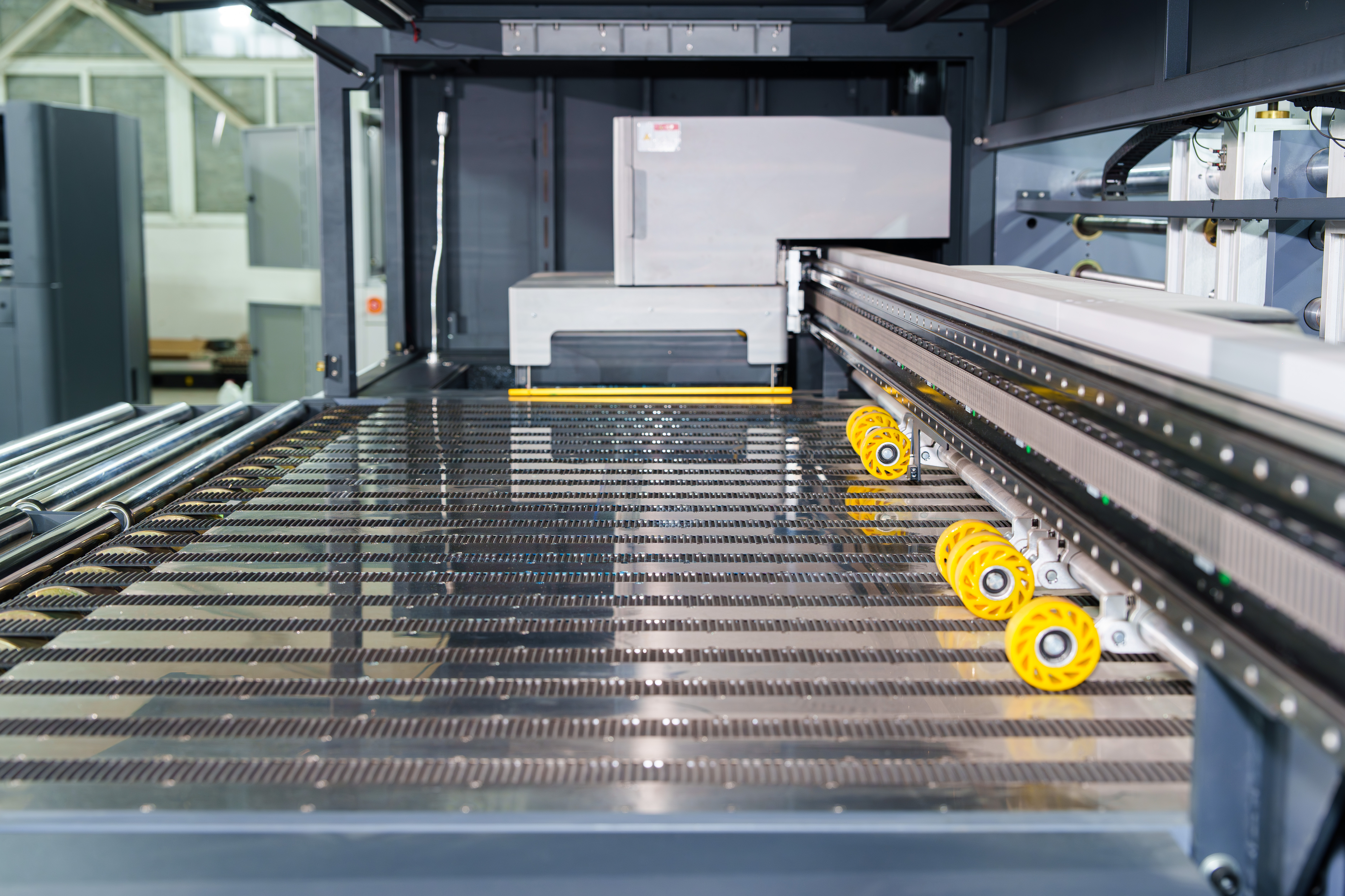 直线电机驱动,重复精度 ±0.1 mm,打印速度提升 40%;22 区真空侧吸平台,2–15 mm 瓦楞纸板全程无翘曲、无偏移。
